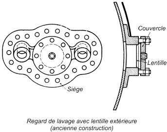 on trouve encore des regards de lavage, présentant des sièges d'étanchéité
